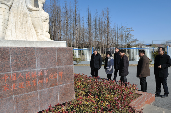 看望慰問結束后,來到淮海農場走訪慰問的劉克英,還饒有興趣地參觀了農建四師暨淮海農場歷史陳列館,實地感受軍墾農場的傳統文化。每到一處,劉克英總要掏出手機拍下珍貴的情景照片,仔細詢問和了解農建四師廣大將士來到淮海的生產生活和建設方面的情況。劉克英說,農建四師不僅在荒灘上創辦了淮海農場,更是為我們留下了富貴的精神財富,涌現了像“江大鍬、仇大筐”等英模人物。我們要不忘初心,牢記使命,傳承并發揚好軍墾文化精神,努力把淮海農場建設的更加美好。圖為劉克英在走訪慰問和參觀陳列館時的鏡頭。