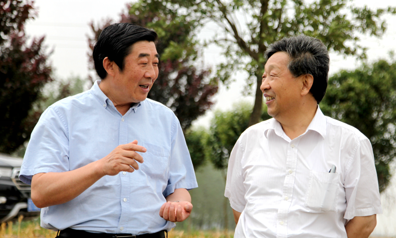 期間,恰逢中國工程院院士、著名水稻專家張洪程到黃海分公司,檢查兩位常駐博士的課題研究進展情況。 “老友相見分外高興”—— 胡兆輝與張洪程高興的拉起了手、相互問候。隨即就農業科技創新、農產品市場、成果轉化應用、生態保護及農產品質量管理等話題進行廣泛深入探討。胡兆輝感謝張洪程院士為江蘇農墾農業現代化建設作出的突出感謝,希望繼續以黃海分公司院士工作站為平臺,將更多的農業高新技術研究課題落戶農墾。農墾也將進一步發揮諸多優勢,攜手努力,突破應用“瓶頸”,將科學技術真正轉化為生產力,更好地擔當起“國家糧食安全”的社會責任。
