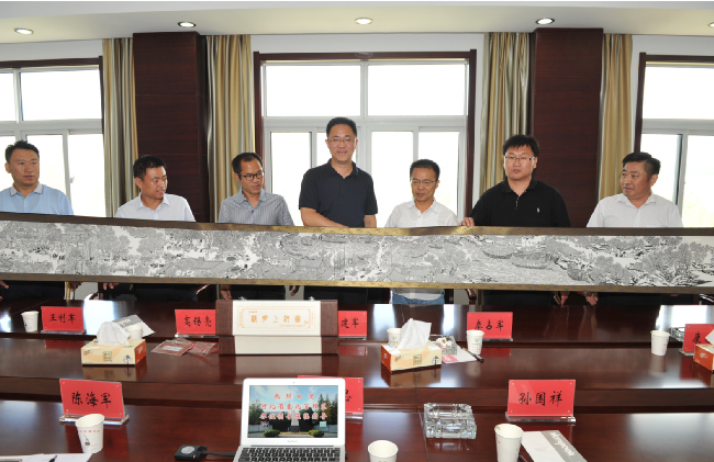 座談結束后,白建軍一行還向淮海農場有限公司贈送了一幅由管理區自行生產,并具有濃郁鄉土氣息的世界非物質文化遺產《清明上河圖》精美包裝剪紙。