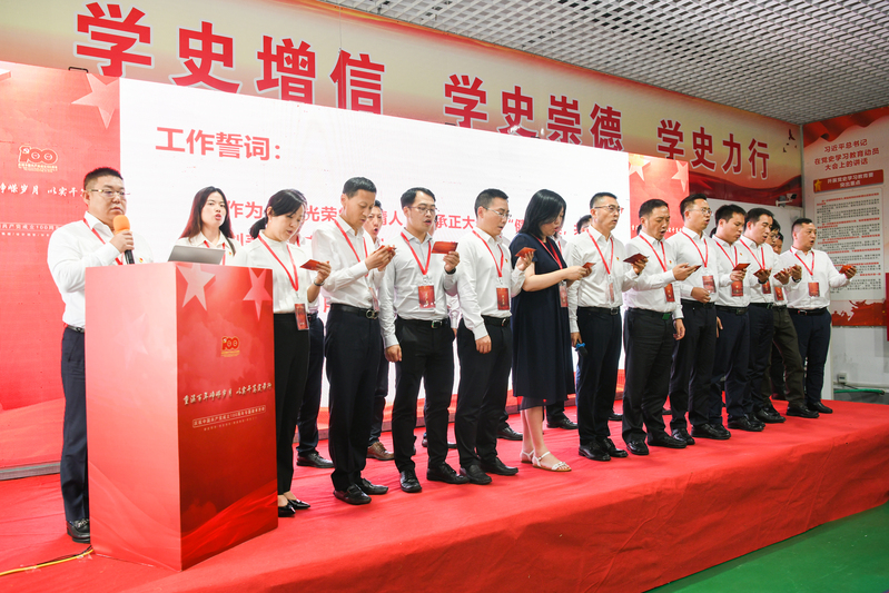 會上,九名優秀黨員代表分享了學黨史、感黨恩、跟黨走的感悟,紛紛表示將以共產黨員的先進性指導工作,啟發工作思路,取得良好業績。在姜國勇的帶領下,與會人員鄭重進行工作宣誓,承諾用智慧和汗水創造價值,為實現百年天晴而不懈奮斗。
