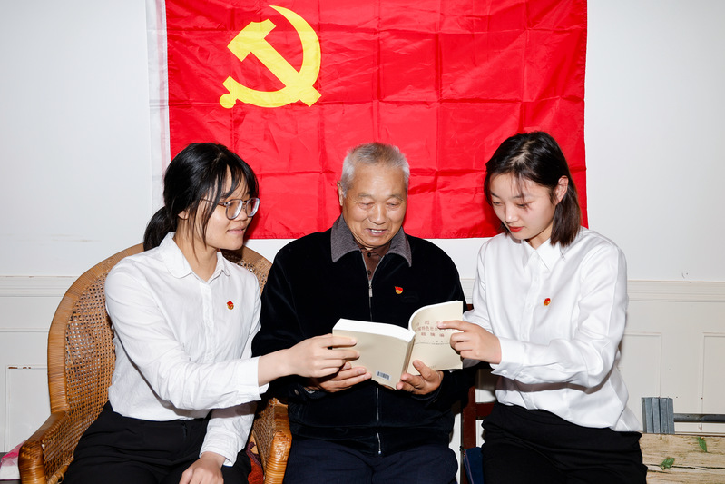 “今天我為您讀的這篇是《習(xí)近平新時(shí)代中國(guó)特色社會(huì)主義思想專題摘編》中的第二章《堅(jiān)持和加強(qiáng)黨的全面領(lǐng)導(dǎo)》……”青年團(tuán)員為退休老黨員耐心講解本次主題教育的核心精神和學(xué)習(xí)重點(diǎn),宣傳黨的最新政治理論和方針政策。