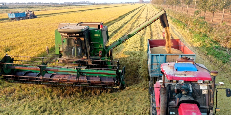10月24日,江蘇農墾黃海農場11萬畝水稻迎來豐收?,F場收割機的隆隆轟鳴,糧食運輸車輛來回穿梭,確保水稻應收盡收、機收減損、顆粒歸倉。