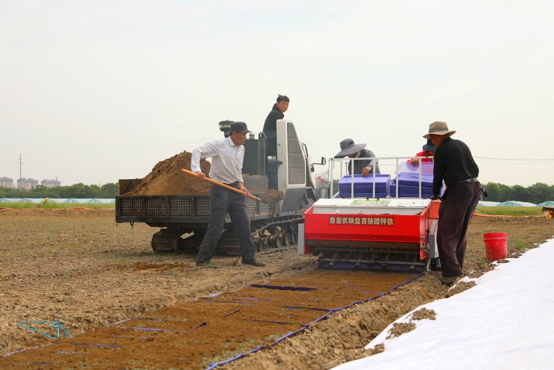 連日來,蘇墾農發江心沙分公司搶抓晴好天氣進行流水線育秧作業。作業現場,隨著自走式育秧機的前行,工人們分工協作,輔助撒種、覆土和蓋膜等作業,大幅提升育秧質效。