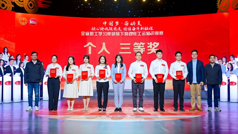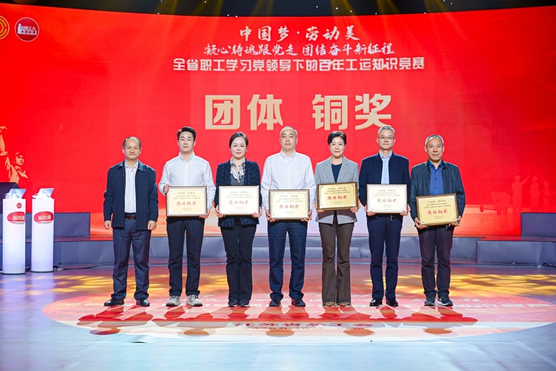 10月24日,由江蘇省總工會舉辦的“中國夢·勞動美——凝心鑄魂跟黨走,團(tuán)結(jié)奮斗新征程”全省職工學(xué)習(xí)黨領(lǐng)導(dǎo)下的百年工運(yùn)知識競賽活動在江蘇省廣播電視總臺1號演播大廳舉行,來自全省各地市和產(chǎn)業(yè)工會的23支代表隊(duì)、69名精英選手參與比賽。上午的初賽中,集團(tuán)代表隊(duì)的欒薇、王淑玉、黃昊之3名隊(duì)員克服備賽人員分散、備賽時間短等困難,在初賽三輪比拼中越戰(zhàn)越勇,以團(tuán)體第五名的成績殺入下午總決賽,決賽中隊(duì)員們團(tuán)結(jié)拼搏、穩(wěn)定發(fā)揮,最終獲得1名個人二等獎、2名個人三等獎和團(tuán)體銅獎的好成績。