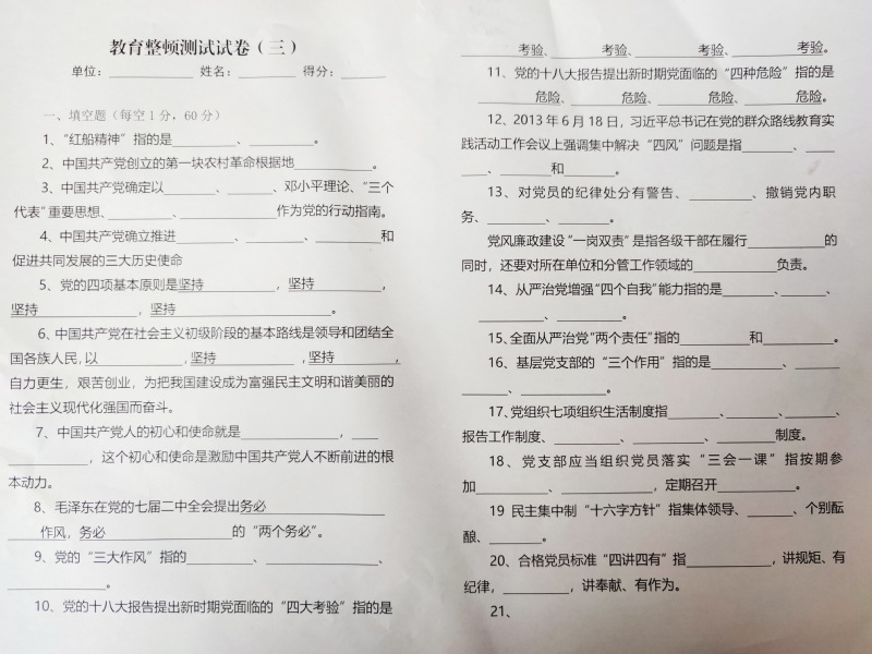 在測試前,派出所對廣大干警和聯防隊員進行了一次黨史的集中學習和輔導,輔導結束后,測試采用開卷限時的形式進行,內容主要包括黨史、新中國史、改革開放史、社會主義發展史等。測試形式以填空題、簡答題兩種形式。在夜校考試現場,大家專心致志認真答題,遵守紀律,考試氣氛濃厚。