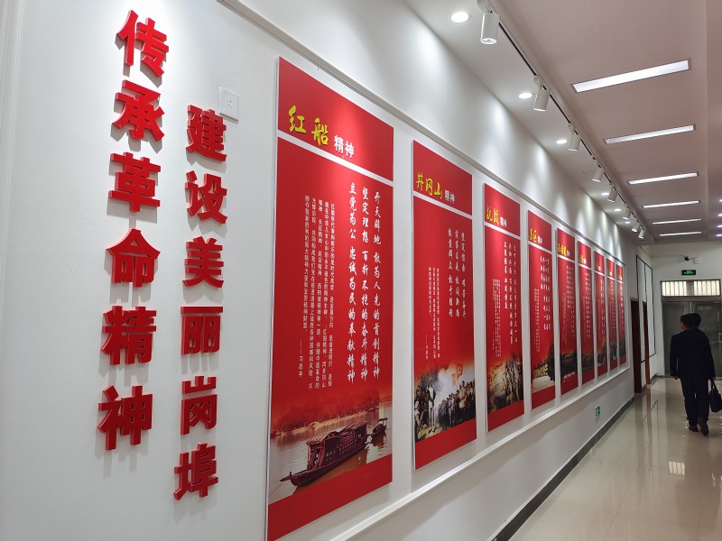 崗埠農(nóng)場利用新時代文明實踐中心現(xiàn)有資源打造黨史學(xué)習(xí)教育陣地:一是統(tǒng)籌運用基層黨員活動室集中開展黨史學(xué)習(xí)教育;二是運用道德大講堂定期播放紅色電影;三是在職工書屋里設(shè)置黨史學(xué)習(xí)教育專柜;四是利用室外LED大屏播放黨史相關(guān)視頻;五是制作17面黨史學(xué)習(xí)教育專題宣傳畫,對實踐中心沿線燈箱進行集中更換;六是在中心走廊打造“傳承革命精神”專欄。