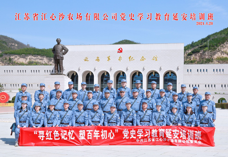 為扎實開展好黨史學習教育,進一步筑牢理想信念,傳承紅色基因,發揚紅色傳統,4月18日至22日,江心沙農場組織黨委中心組成員、中層以上管理人員、單位負責人和優秀黨員代表前往革命圣地——延安開展以“尋紅色記憶 塑百年初心”為主題的黨史學習實境教育。農場公司黨委書記、董事長朱江勝,黨委副書記、總經理、社區管委會主任薛忠,黨委委員、副總經理、工會主席蘇勇,分公司副總經理施磊華,社區主任助理何璜煒一同參加活動。