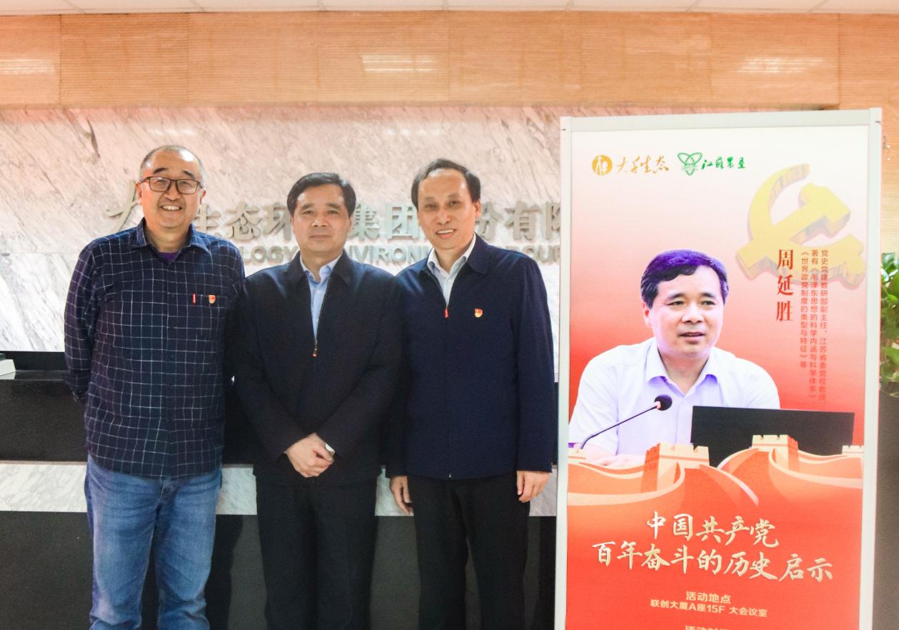 2021年4月22日下午,江蘇省農(nóng)墾投資管理有限公司黨支部和大千生態(tài)環(huán)境集團(tuán)股份有限公司黨支部聯(lián)合組織黨史學(xué)習(xí)活動(dòng),特別邀請(qǐng)了中共江蘇省委黨校黨史黨建教研部副主任周延勝教授為黨員們作《中國(guó)共產(chǎn)黨百年奮斗的歷史啟示》主題講座。