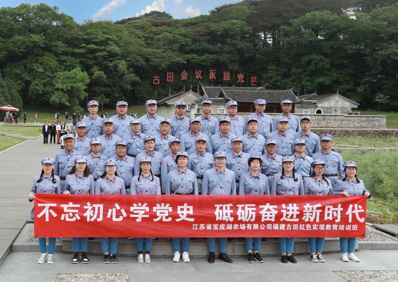 沿著總書記的足跡實境學。4月13-17日,寶應湖農場公司赴福建古田開展“不忘初心學黨史 砥礪奮進新時代”紅色實境教育培訓。學習沿著習近平總書記的足跡,先后來到古田會議會址、紅軍無名烈士墓、長征第一村中復村、光榮亭、毛澤東才溪鄉調查陳列紀念館、毛澤東才溪鄉調查舊址等,開展專題教學、現場教學、情景教學、參觀教學等形式多樣的學習。專題教學中,學員們認真聆聽龍巖市委學校林炳玉主任的《古田精神光芒萬丈》專題黨課;現場教學中,學員們瞻仰主席園、觀學古田會議紀念館、重溫入黨誓詞;情景教學中,學員們開展了“支援前線”“護送戰友”“再現長征出發儀式”等,讓學員們在踏尋革命足跡中,學習、思考、實踐、感悟。
