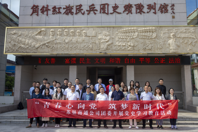 5月21日,為紀念中國共產黨建黨100周年,蘇墾南通公司團委聯合江海街道團委開展“青春心向黨 筑夢新時代”主題活動,以“4+1”沉浸式實景教學方式,踐行傳承革命精神,引導廣大團員青年在百年黨史中汲取前行發展的智慧和力量。蘇墾南通公司黨委書記、董事長、農發南通分公司總經理嚴忠,蘇墾南通公司黨委副書記、工會主席、農場公司總經理朱忠惠,江海街道黨工委副書記李海洋,江海鎮區社管會副主任許云鳳、徐培等5位領導和30余名青年團員參加了活動。