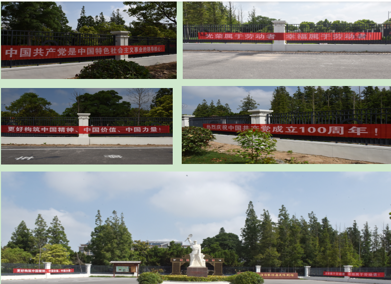 為進一步弘揚紅色文化,慶祝中國共產黨成立100周年,淮海農場公司除運用多載體宣傳黨史學習教育,不斷壯大黨史學習教育宣傳陣地外,還通過制作一幅幅醒目的橫幅標語,讓農場社區的每個人和來到陳列館進行革命傳統教育的人,隨時隨地接受黨史學習教育的洗禮和熏陶。